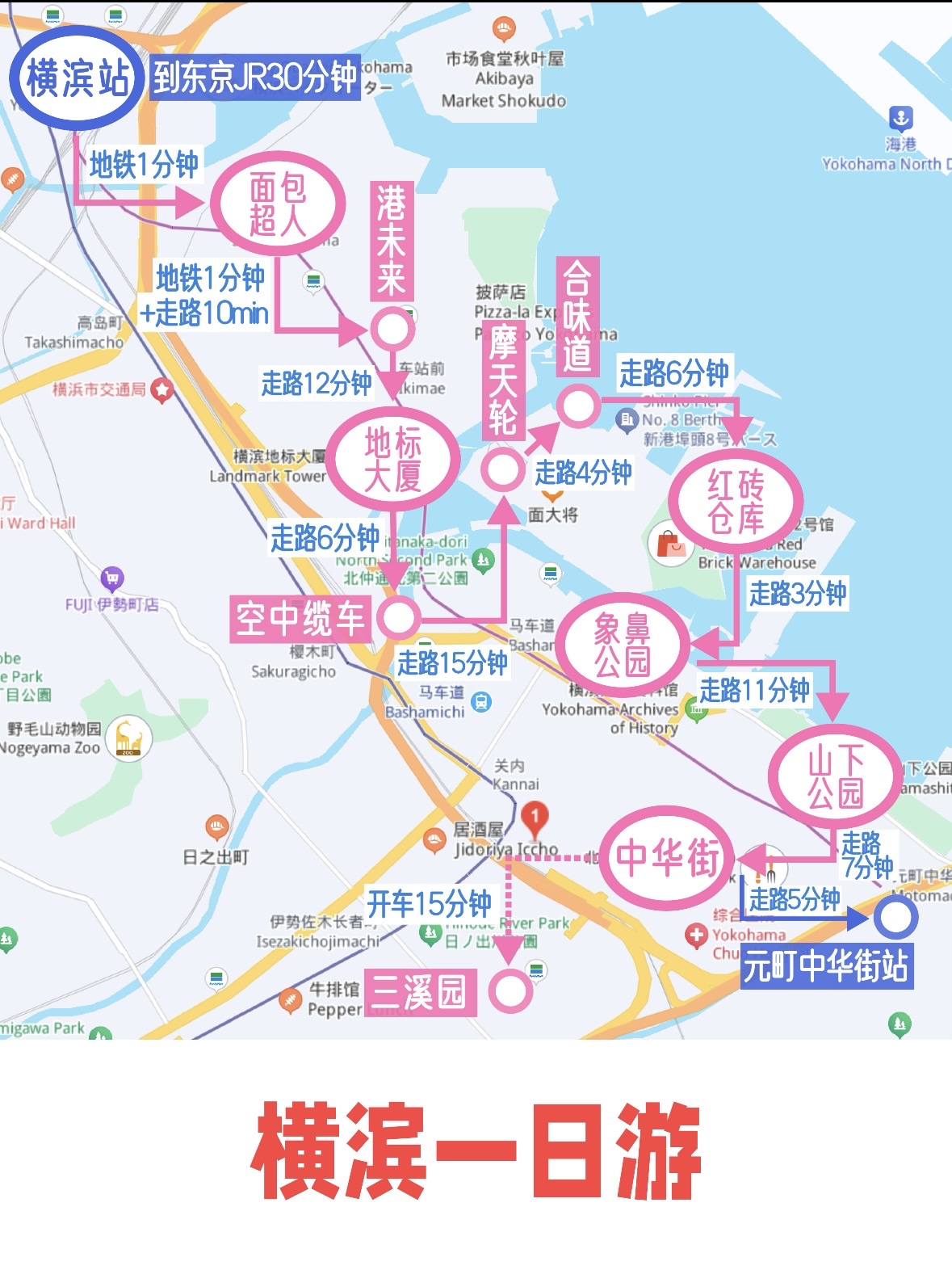 由于时间的关系,横滨一天游休闲的话大概只能逛这几个点。